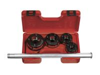 В набор входит клупп с трещоткой с неразборной рукояткой, резьбонарезные головки 1/2 – 3/4– 1 – 1.1/4", пластмассовый чемодан.